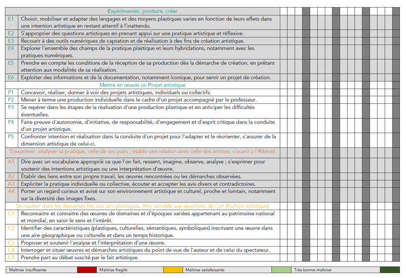 Grille d'évaluation pour l'année