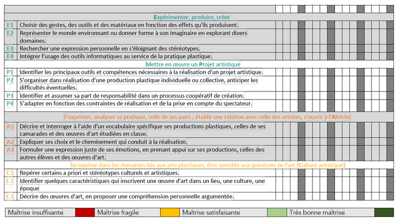 Grille évaluation de l'année